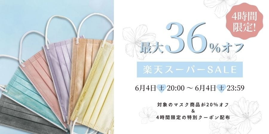 当社は、楽天市場の『楽天スーパーSALE』に参加し、人気の日本製カラーマスク『極 KIWAMI』シリーズを20%オフで販売。さらに、4時間限定で全商品にお使いいただけるスペシャルクーポンを配布いたします。