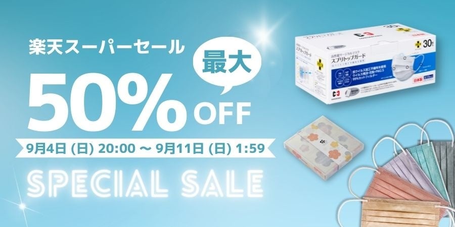 当社は、9月4日(日)20:00~9月11日(日)01:59にわたり、楽天市場で開催される「楽天スーパーSALE」にて、最大50%OFFとなるセールを実施します。