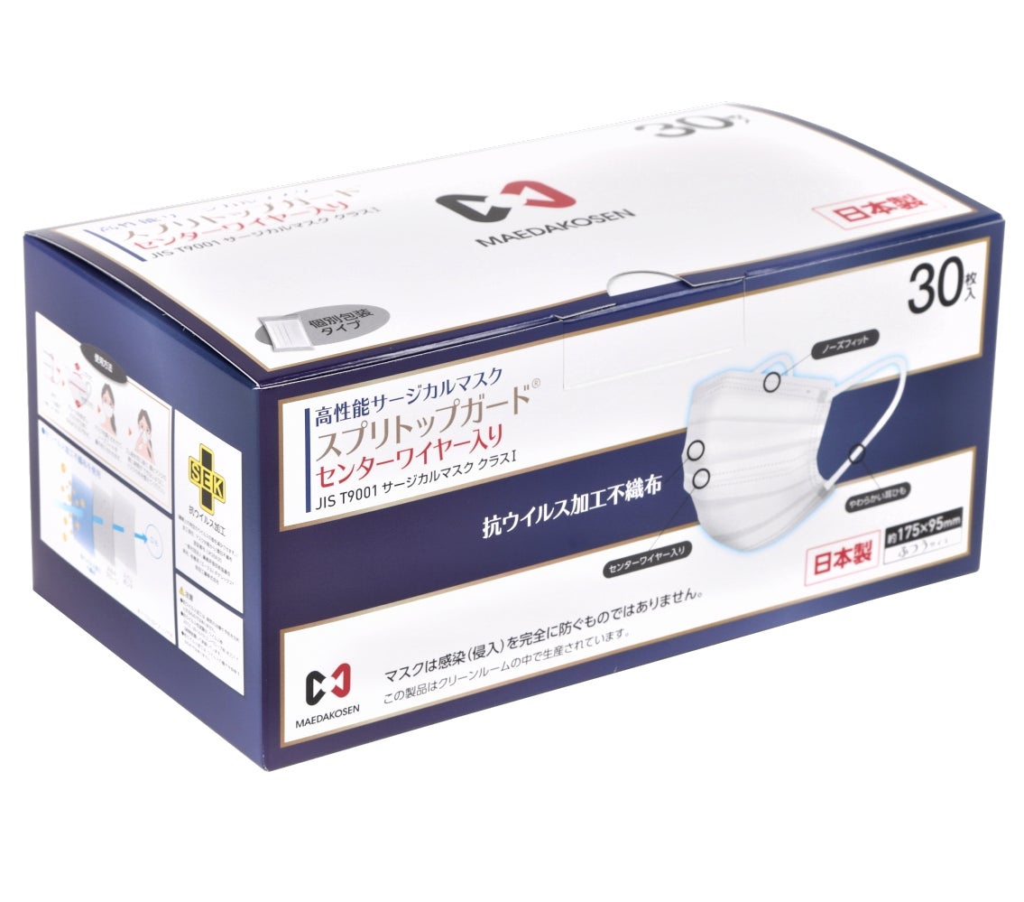 スプリトップガードは、コロナ禍でも安心してお使いいただけるマスクを届けたいという思いから開発され、まもなく累計販売枚数30万枚を突破する日本製抗ウイルスマスクです。前田工繊では、今まで以上に安心してマスクをお選びいただけるよう、JIS規格『JIS T9001』を取得し、これに伴いより快適な着け心地を叶える「センタープリーツ形状」へ形状変更いたしました。