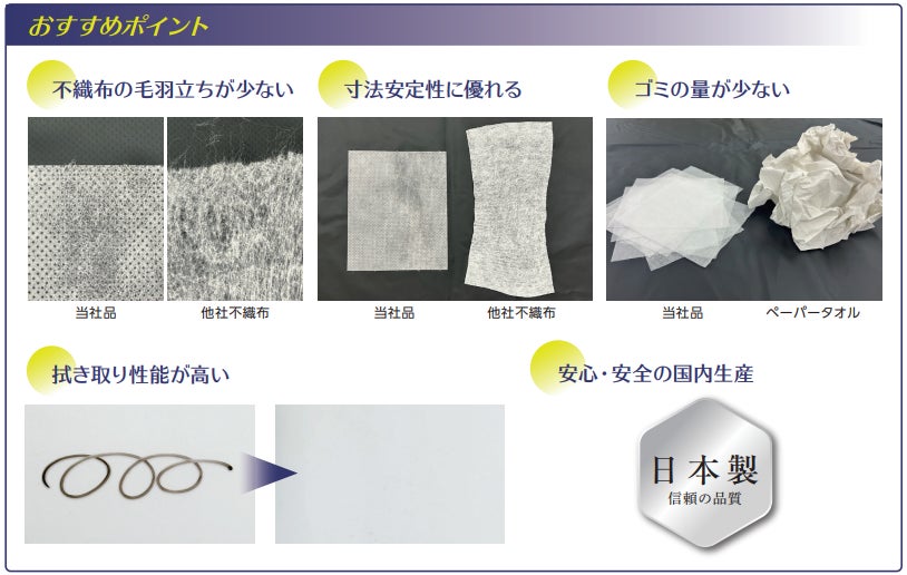 ・毛羽立ちが少なく拭き取り部分に繊維が残らない。