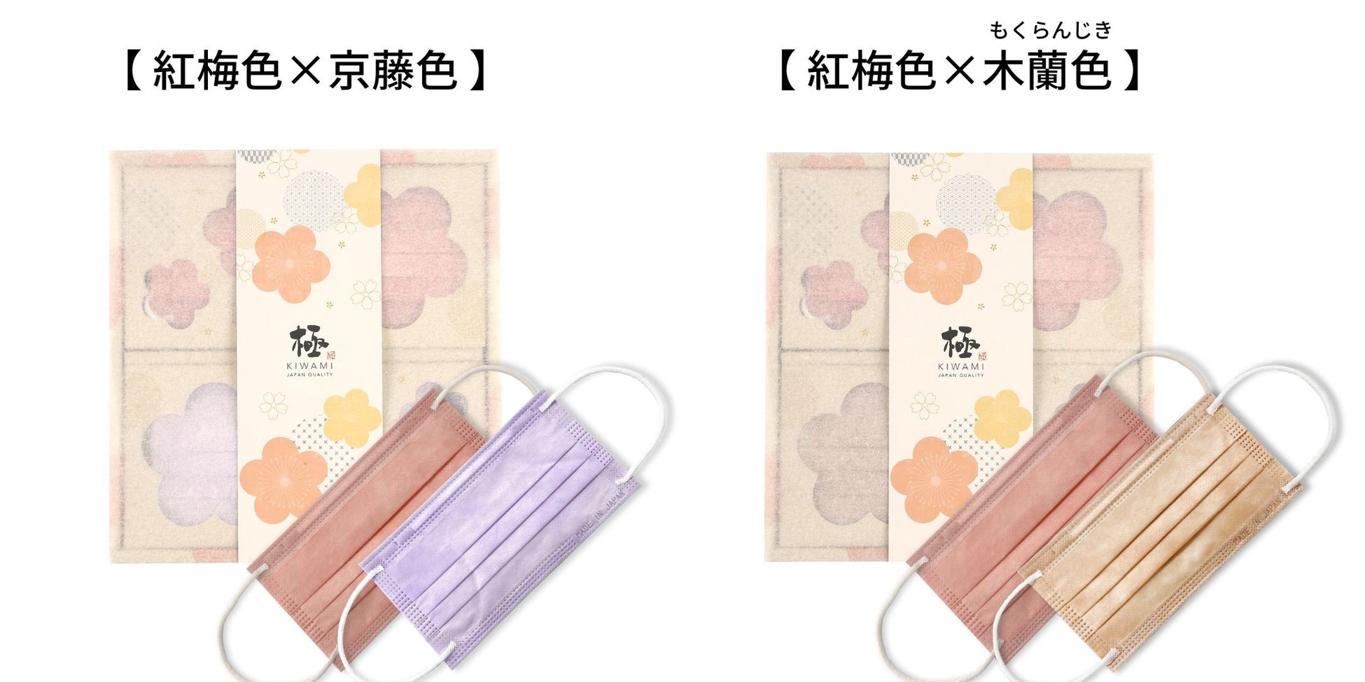 ※極KIWAMIマスクギフトパッケージ、極KIWAMIアソートパックは、耳紐が白色となっており、 極KIWAMIマスク(各色30枚入り)とは仕様が異なります。ご注意ください。