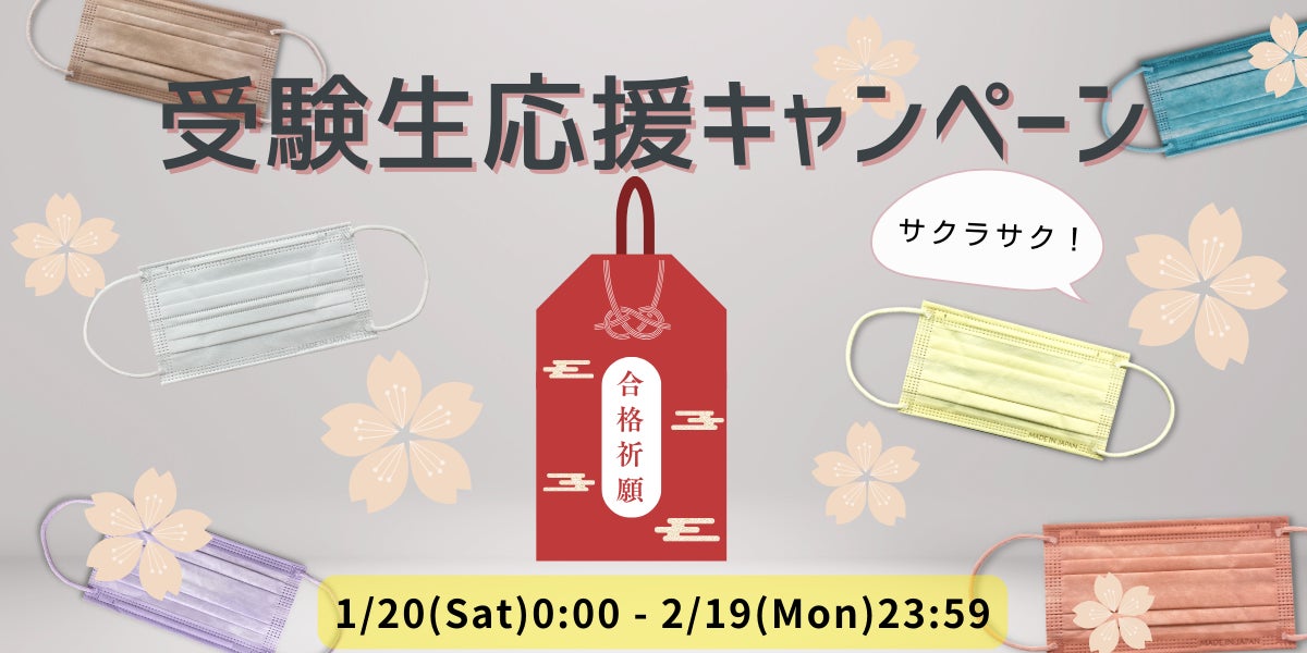 そこで当社は、抗ウイルス不織布を使用したサージカルマスクや、淡い色合いが人気のカラーマスクなどを対象とした「冬の受験生応援キャンペーン」を実施いたします。