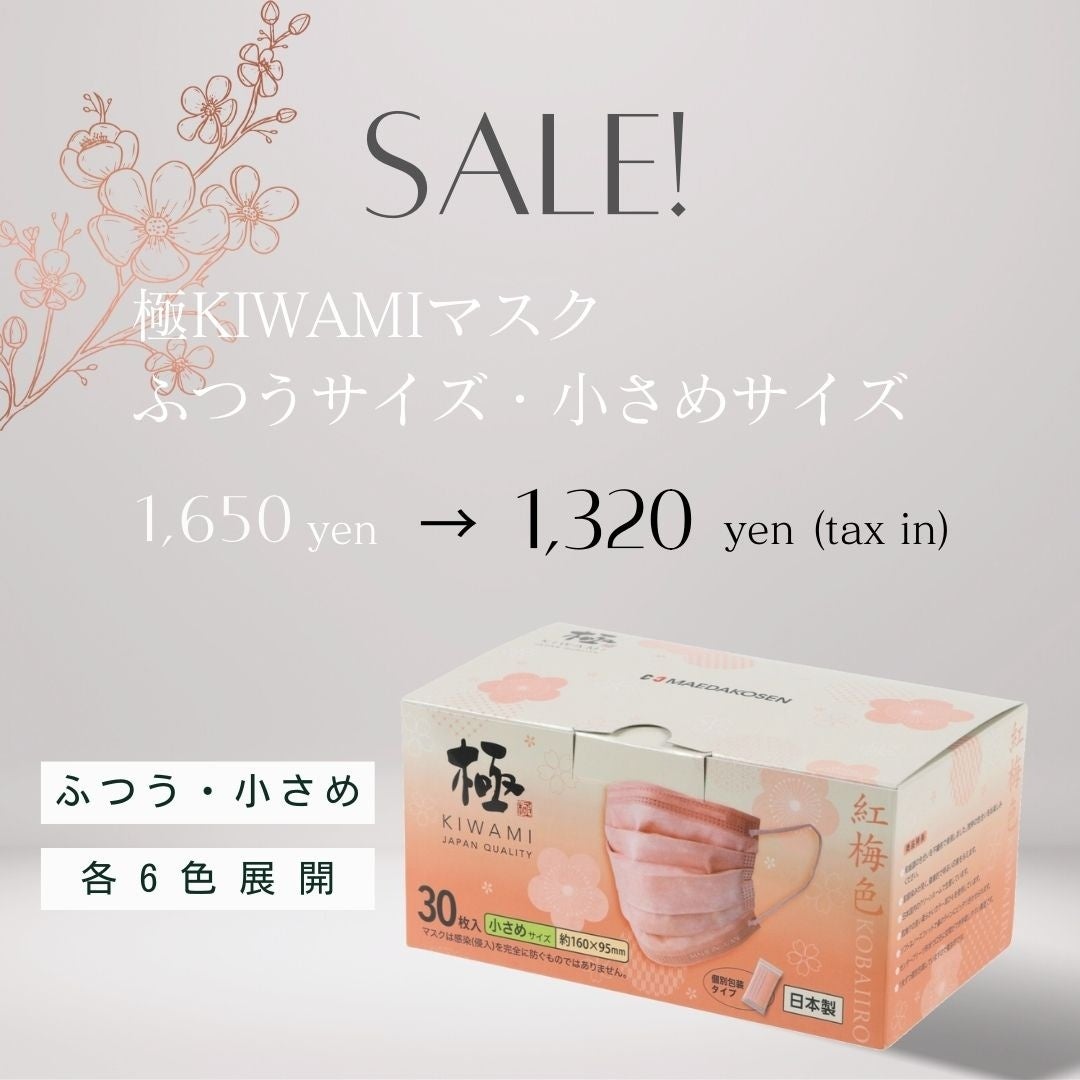 極KIWAMIカラーマスク 小さめサイズ(30枚入り/箱)全6色