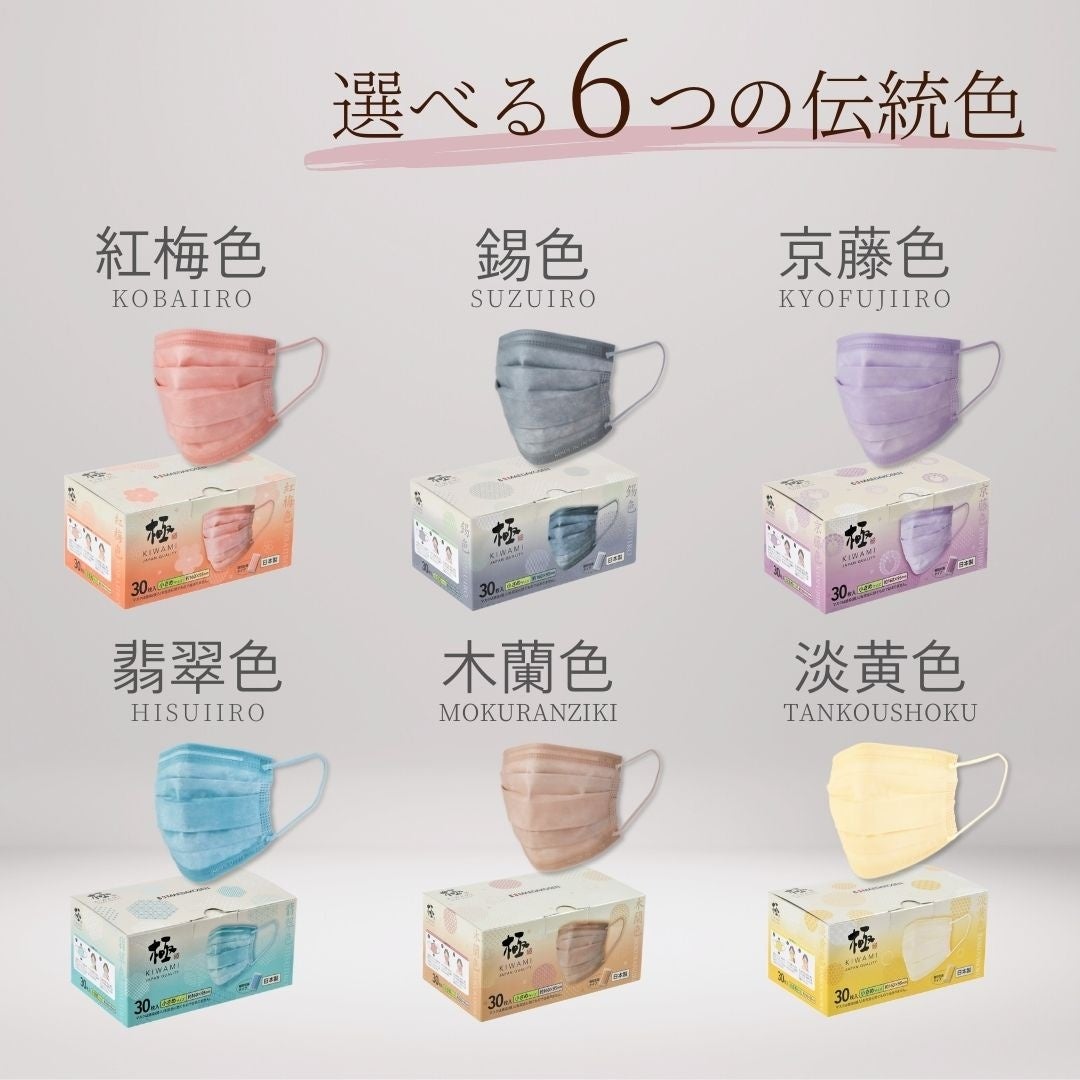 極KIWAMIカラーマスク ふつうサイズ(30枚入り/箱)全6色