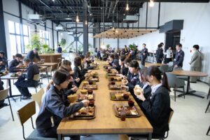 式典の後には、ランチメニュー試食会を行い、ご来賓始め報道関係者、弊社社員にランチを試食していただきました。